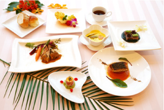 南国雰囲気そのままにハワイ創作料理でゲストをおもてなし。全3コースご用意。 その他ビュッフェスタイル、2次会用立食料理等、お二人のパーティーに合わせてチョイスOK。