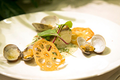 モダンな会場に合わせた「創作フレンチ」で、お祝いの宴を華やかに彩ります。親族中心の会食では和の食材を用いた「和洋折衷オリジナルメニュー」も可能。“桜そば”など「和」の食材も取り入れながら、季節感とお2人の想いを大切に、フードコーディネーターがあなたのご希望をかなえてくれます。