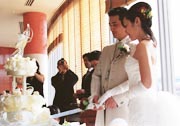 アットホームをテーマに、司会者は友人にお願いし、招待状等のペーパーアイテムやウェディングケーキは自分たちで手作りし、引き菓子やプロフィールビデオは友人に作っていただきました。