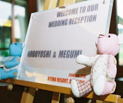 お仕事柄パソコン技術のある伸欣さんがプロフィールビデオを担当、手先が器用な恵美さんはブーケや、ビーズのヘアアクセサリーを作成。